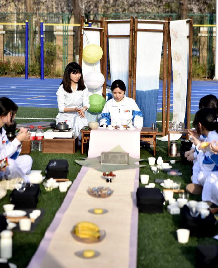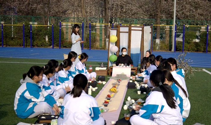 近日,在西安高新第一中学南校区操场的一角,一场别具一格的茶艺课正在展开。与以往不同的是,此次茶艺课从教室内转移到户外,同学们围坐在一起,沐浴着春日阳光,专注地聆听汀尚雲庄古树茶品牌打理人、汉中一方自然教育联合发起人邢娟老师讲解茶文化知识,在大自然中共赴一场与茶的浪漫约会。