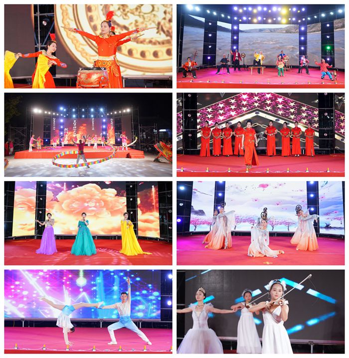 开幕式晚会在激昂的秦腔鼓乐声中拉开帷幕,融合舞蹈《大唐锦绣》、歌曲联唱《美丽中国》《我和我的祖国》、非遗黄河老腔《黄河谣,将军一声镇山川》、旗袍走秀《01大咖秀》、《中华龙》舞龙、杂技、小提琴演奏等节目将晚会推向高潮,展现出新时代广大农民群众的文化自信。
